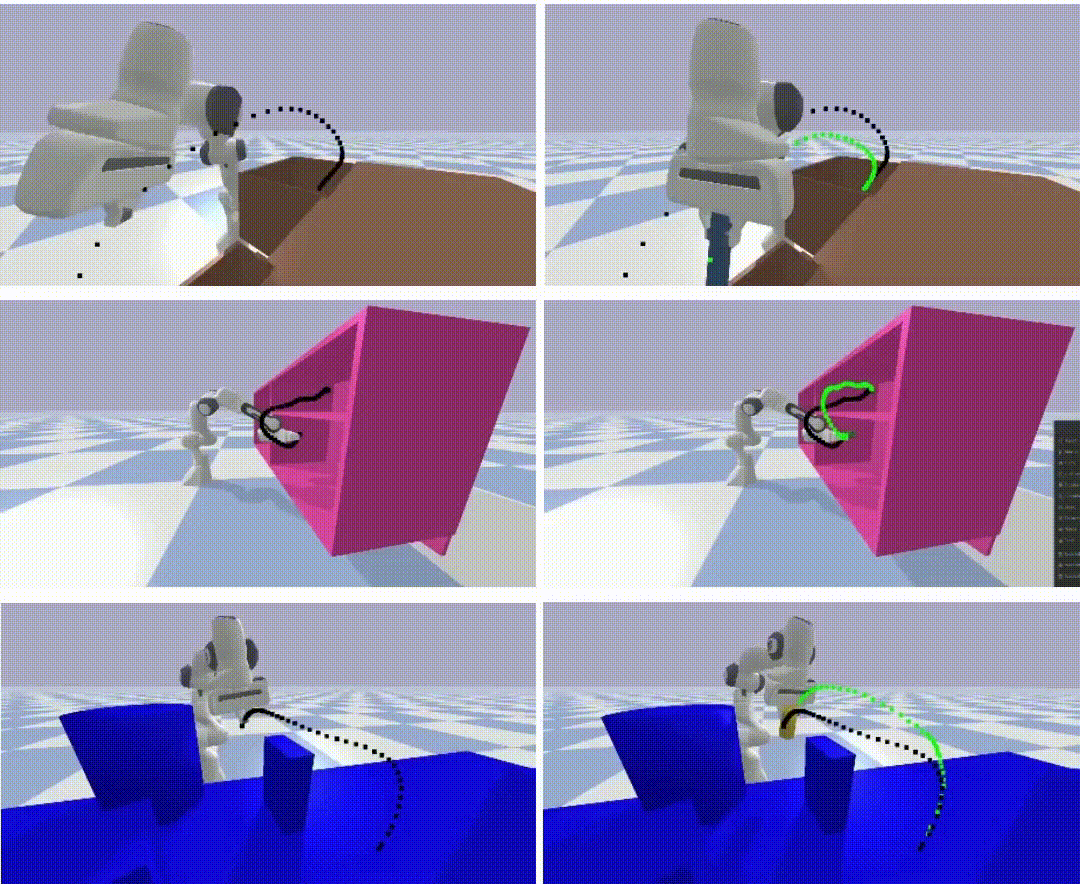 EDMP: Ensemble-of-costs-guided Diffusion for Motion Planning,Paper / Project Page / Code / Video We propose EDMP for motion planning, that combines the strengths of classical motion planning (offering remarkable adaptability) and deep-learning-based motion planning (prior understanding over diverse valid trajectories). Our diffusion-based network is trained on a set of diverse kinematically valid trajectories. For any new scene at the time of inference, we compute scene-specific costs such as "collision cost" and guide the generation of valid trajectories that satisfy scene-specific constraints. |